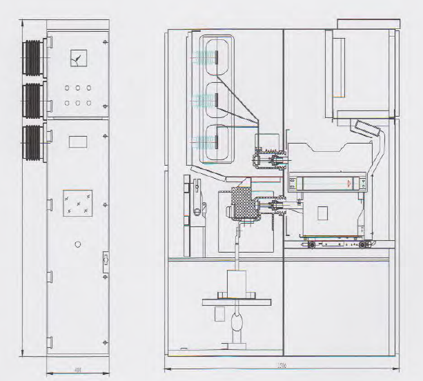 外壳为IP4X(最高可到IP43),隔离间,断路器室门打开时为IP2X |