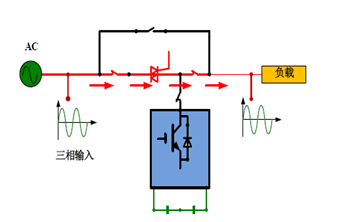 故障或维护的情况下,负载电流将自动转移到故障安全旁路。即电流将通过反并联晶闸管的接触器或旁路开关,直接向负载供电